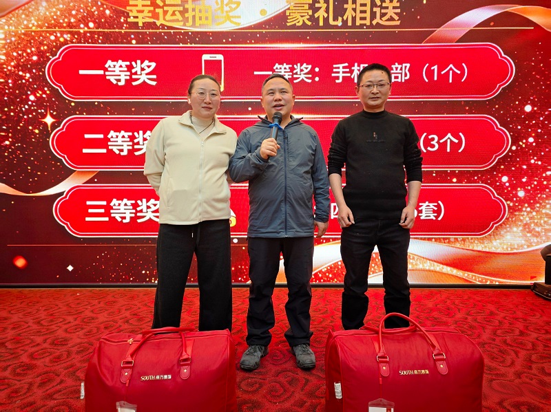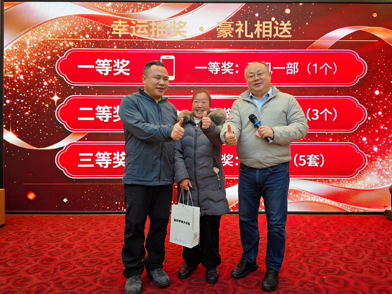就餐结束后,年会迎来了最激动人心的幸运抽奖环节。从实用的小家电到重磅的手机大奖,丰厚的礼品让大家满怀期待。随着获奖者被逐一揭晓,现场气氛被推向高潮。欢呼声、掌声此起彼伏,每一位获奖者脸上都洋溢着惊喜与笑意。公司管理层为他们颁发奖品,这份新年好运不仅是对大家过去一年辛勤付出的回馈,更传递了公司对全体员工的暖心关怀。
